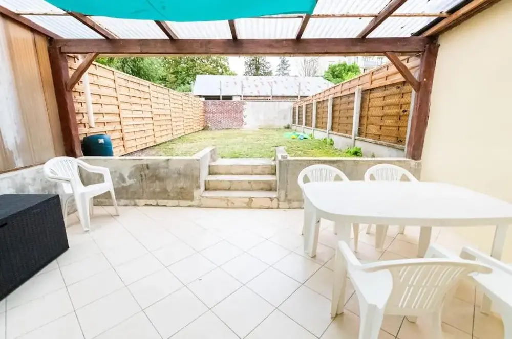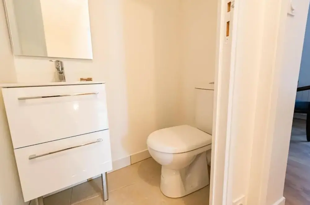 La entrada, la ubicación (estacionamiento), parece ser específica al principio, pero esta entrada está llena de excrementos de perros, pero cubierta por grava. La falta de ducha en el piso de arriba también carece